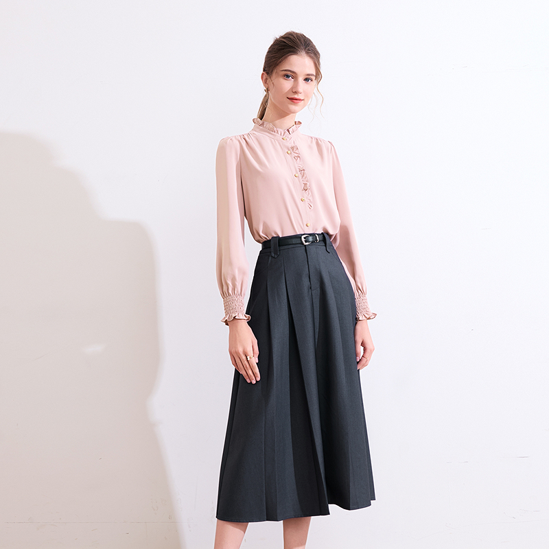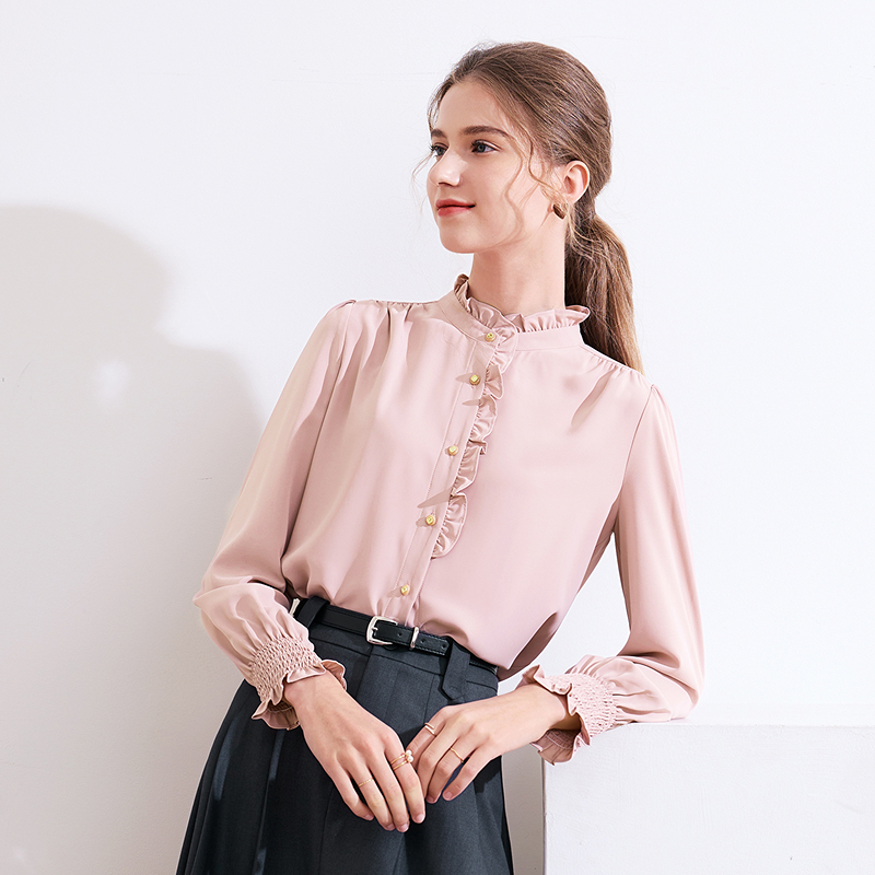 宫廷风木耳边装 款 饰气质优雅长袖 女式 betu百图长袖 衬衫 雪纺衫