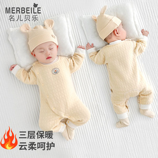 保暖 新生宝宝连体衣初生秋冬满月夹棉冬装 36月婴儿衣服冬天冬季
