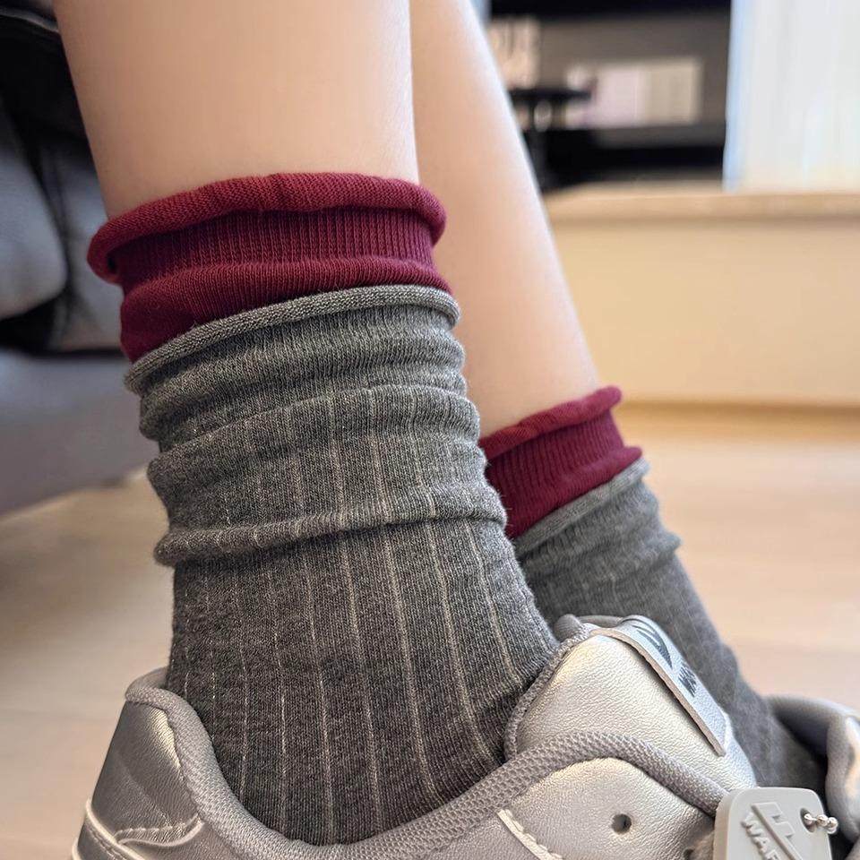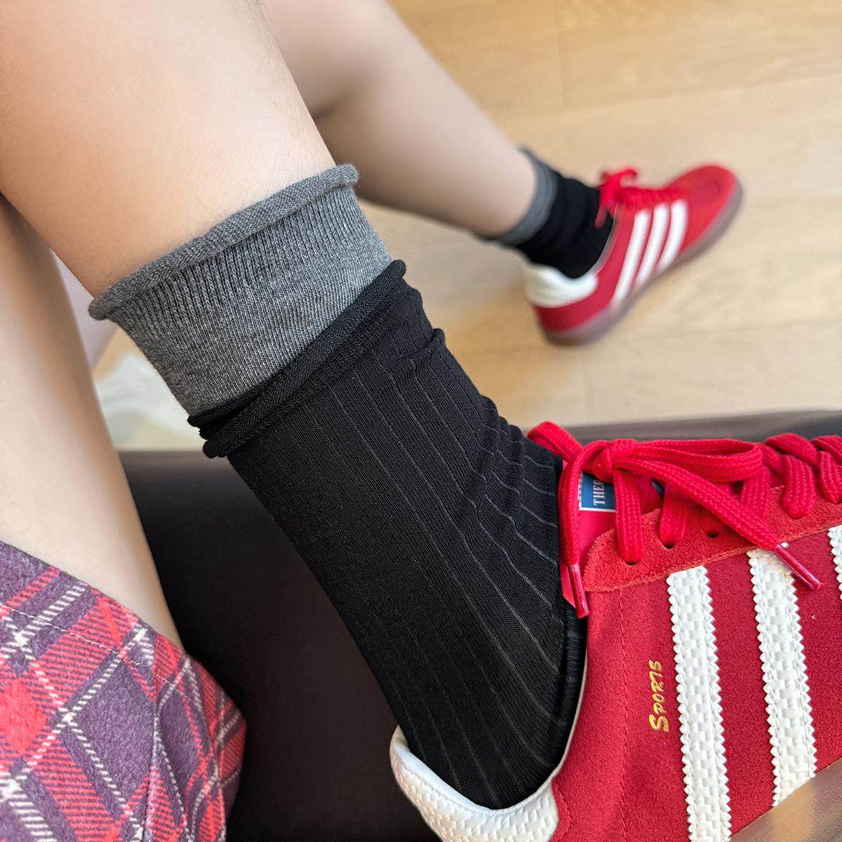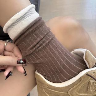 袜say 卷边长筒袜双罗口秋天撞色长袜 日系堆堆袜子女中筒袜春秋款