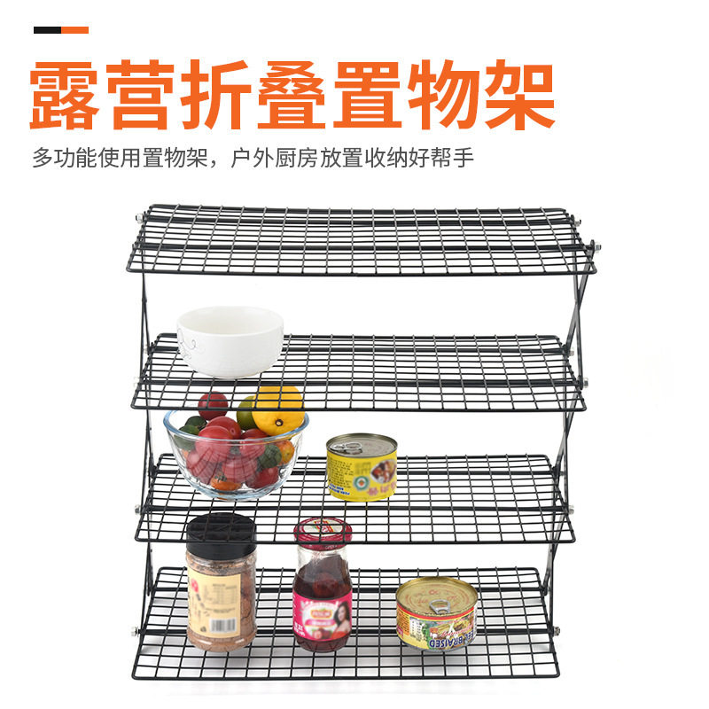 户外露营铁艺置物架野炊落地折叠储物架野营餐架收纳架子可折叠桌
