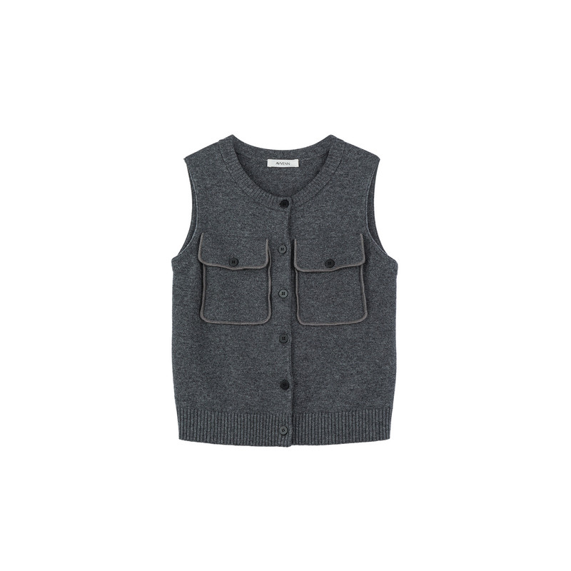 AVVENN修身 小廓形多口袋羊绒毛织马甲AM70702662
