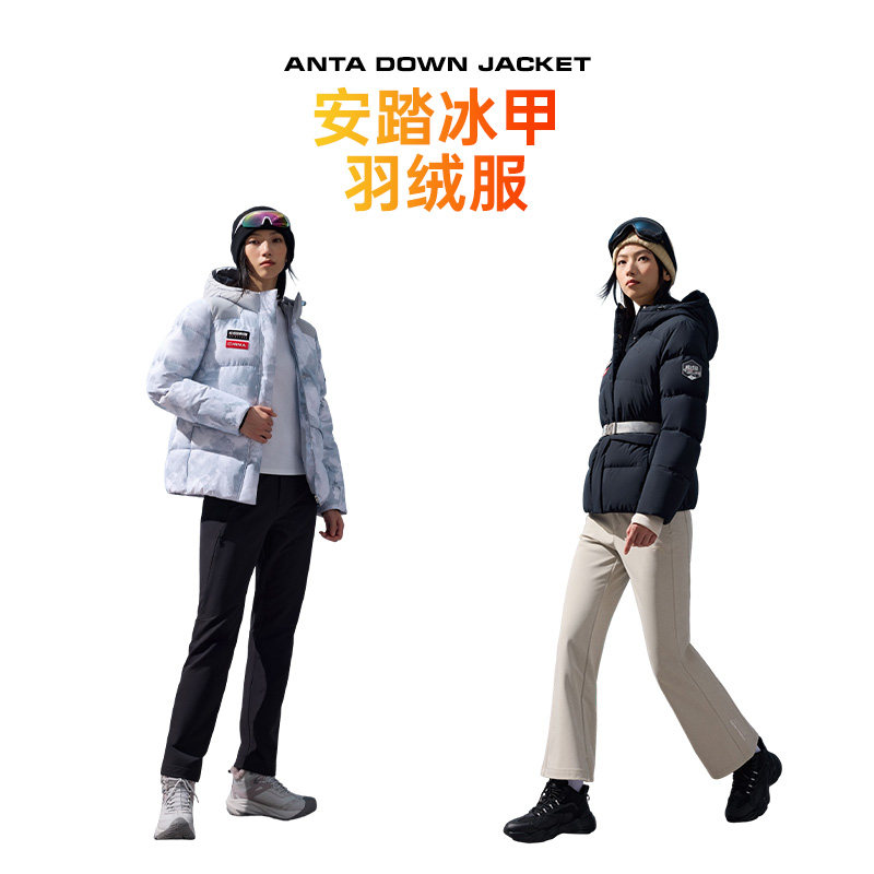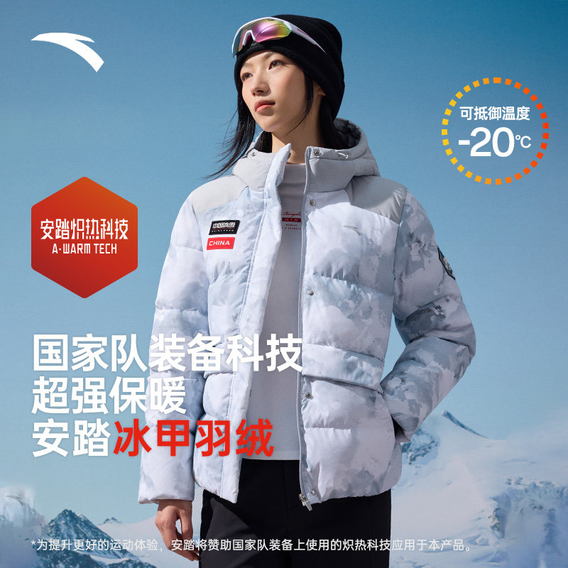 户外棉服夹克162447904 防泼水羽绒服女士冬季 安踏冰甲羽绒 短款