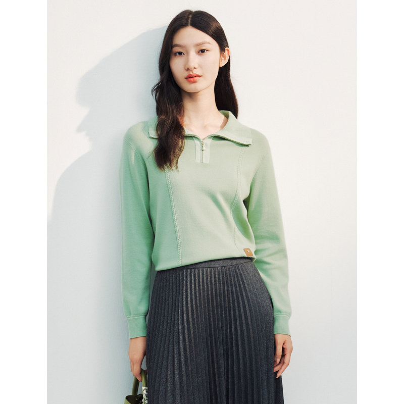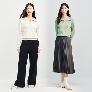 女秋新款 ELSEWHERE珂思 Polo领真丝混纺羊毛衫 时尚 商场同款