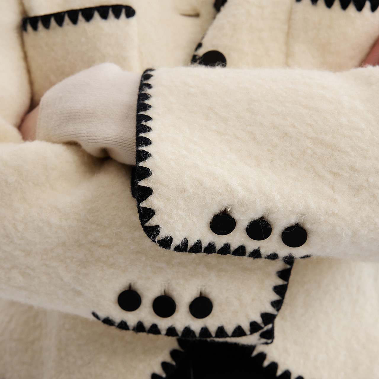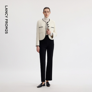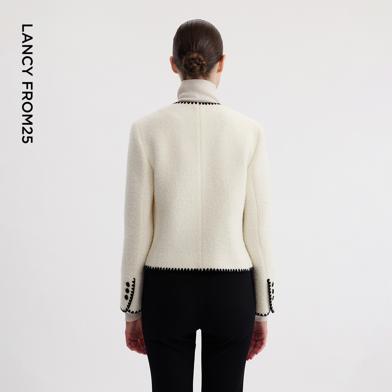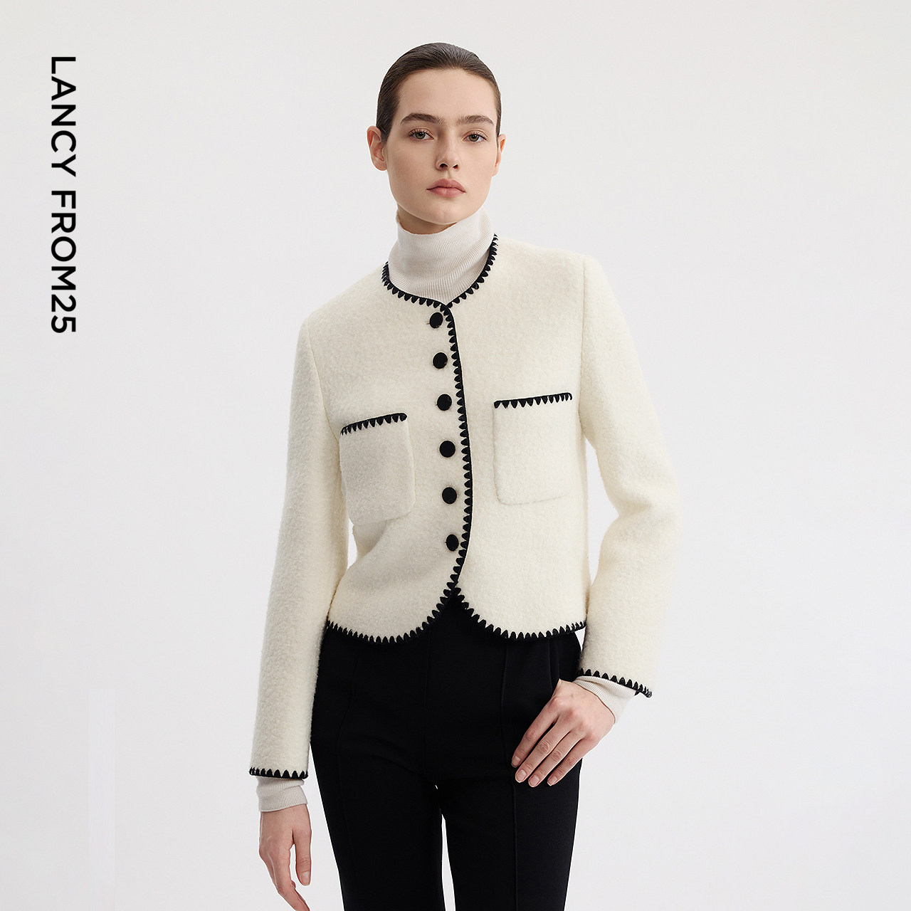 短外套 高级感纯羊毛短款 朗姿法式 优雅黑白撞色小香风2024冬新款