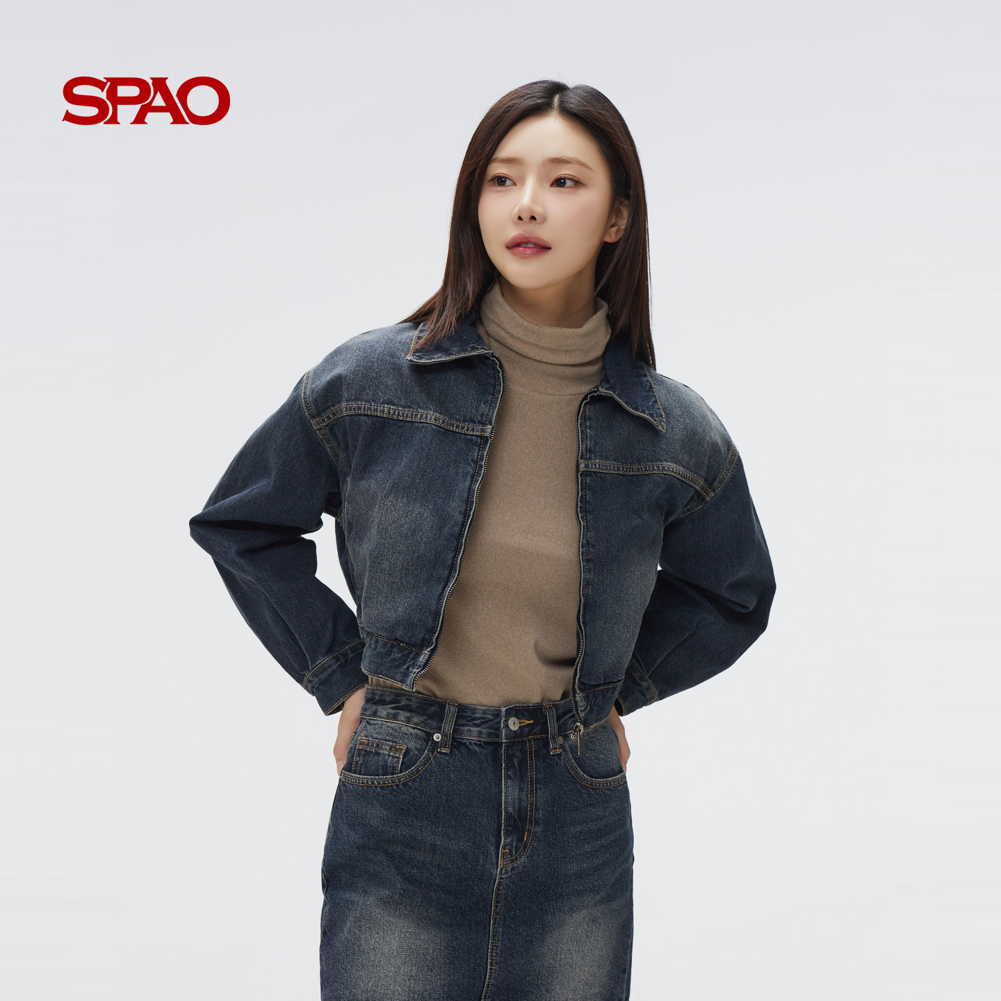 SPAO韩国同款 25年春秋女士潮流复古休闲牛仔外套
