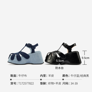女2026春夏新款 JOOC玖诗包头罗马凉鞋 镂空厚底坡跟鞋 向阳而生