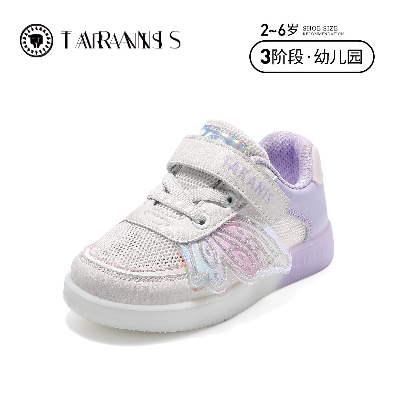 软底运动鞋 泰兰尼斯2023春季 镭射翅膀炫酷女童休闲板鞋 闪灯鞋 新款