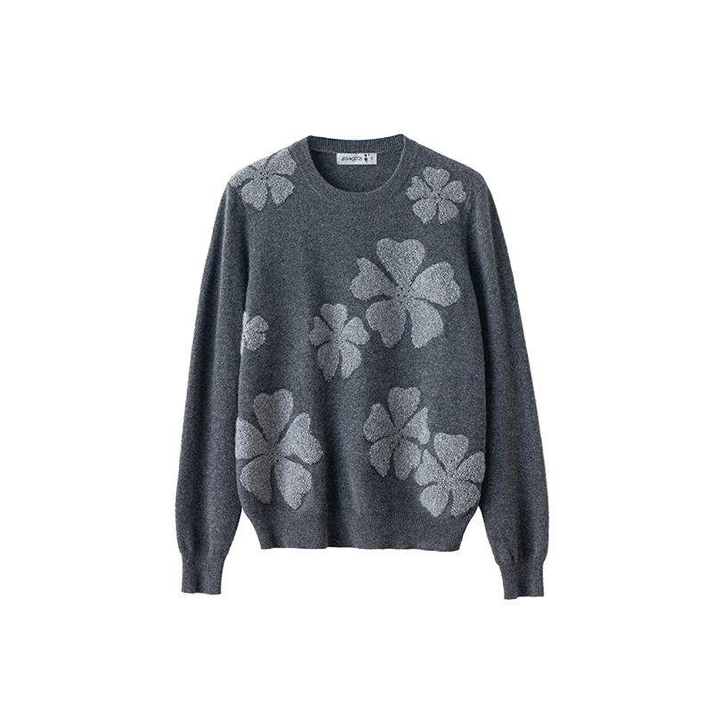 提花水钻套头针织衫 女100纯羊绒时尚 圆领羊绒衫 日神2025早秋新款