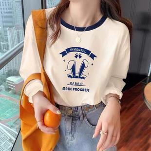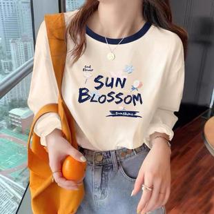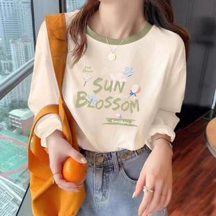 宽松显瘦别致ins风设计感小众上衣 纯棉t恤女秋季 新款 拼接杏色长袖