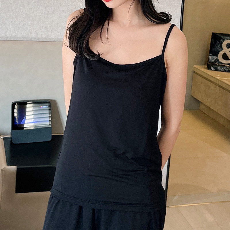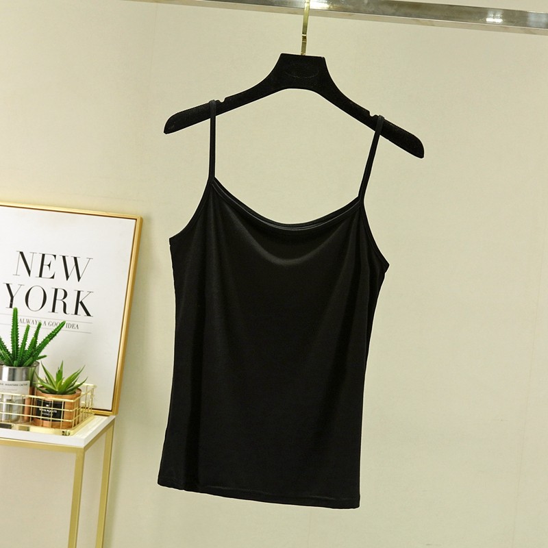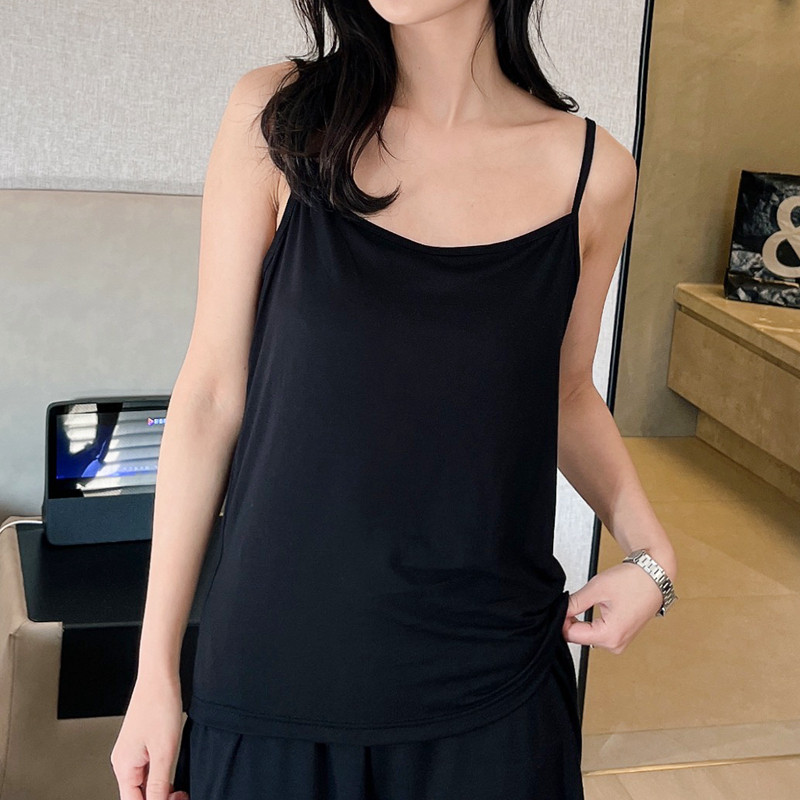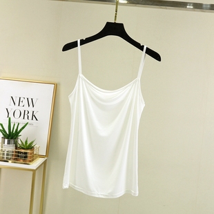 上衣大码 女打底衫 纯色细带背心薄款 春夏日系莫代尔胸垫一体吊带衫