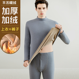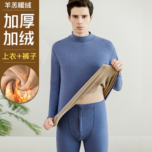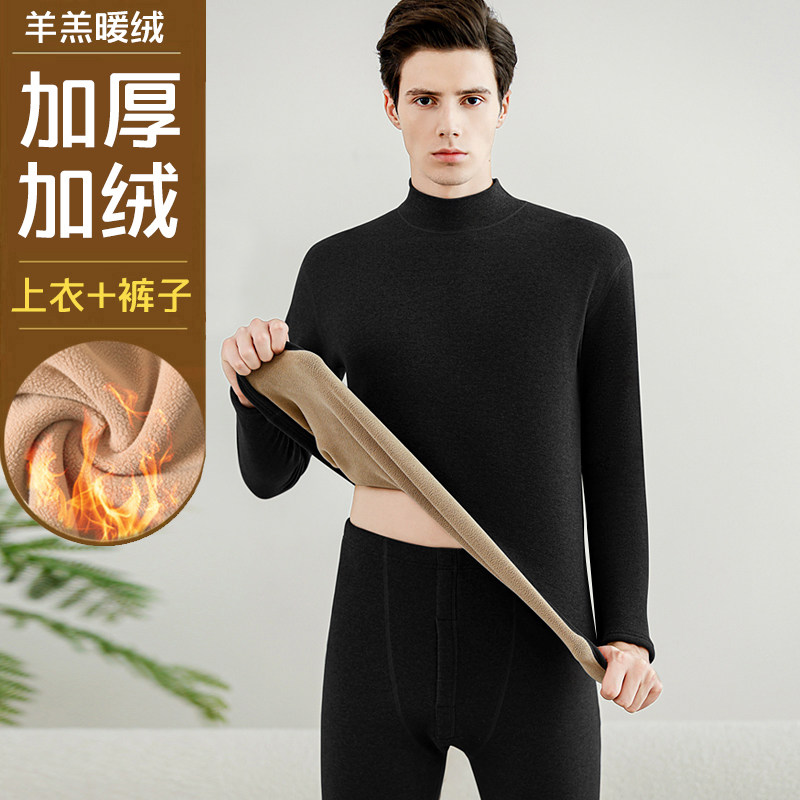 冬季 保暖内衣男士 打底棉毛衫 中高圆领德暖绒秋衣秋裤 加厚加绒套装