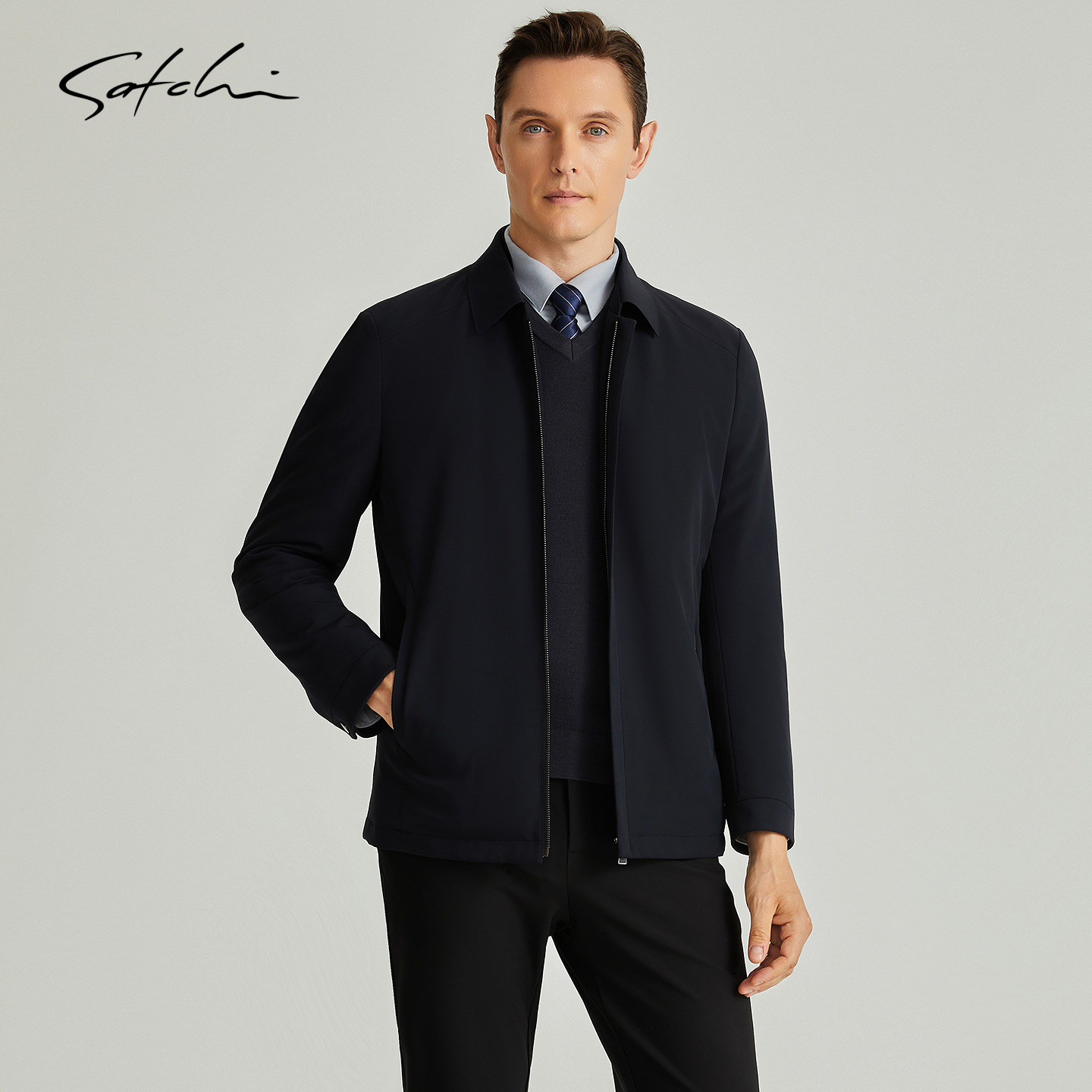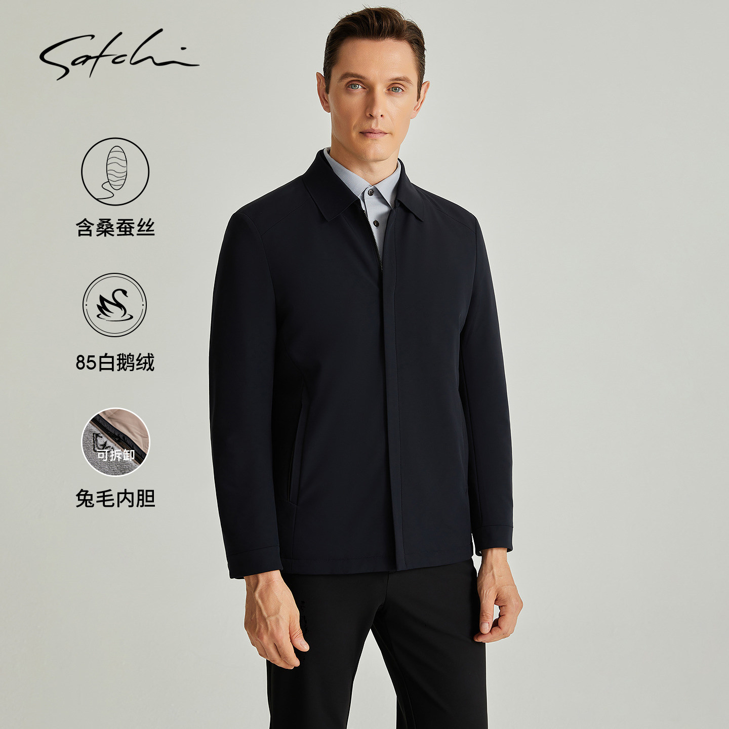 男士 SATCHI沙驰男装 羽绒服商务鹅绒行政夹克外套 可拆卸兔毛内胆