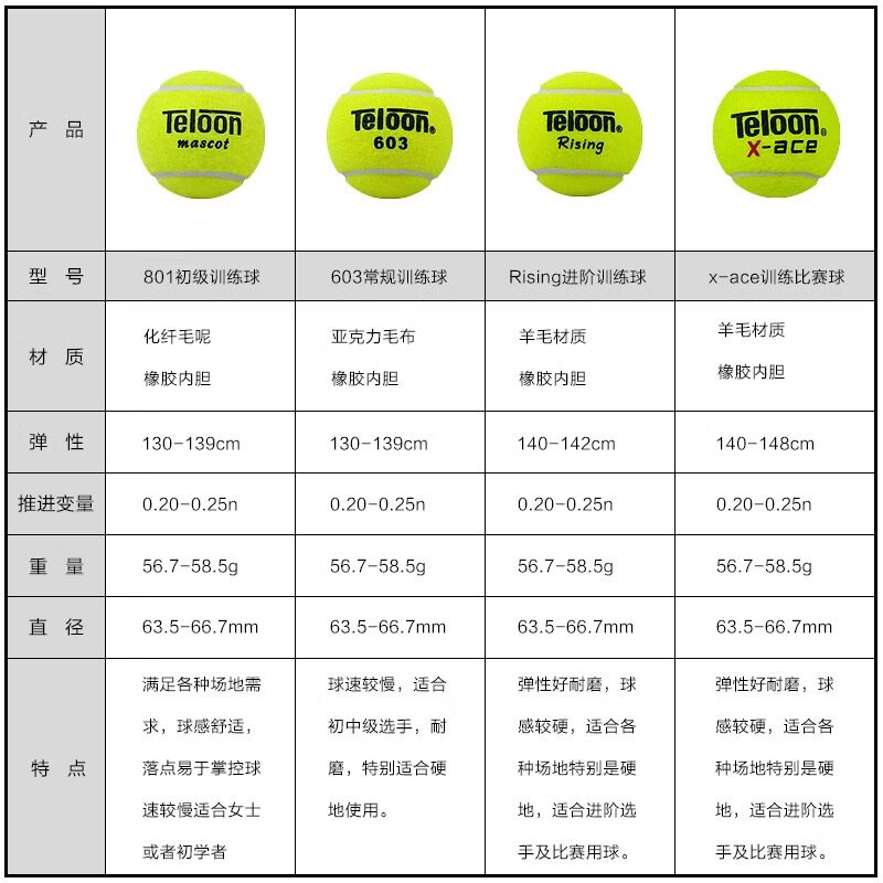 Teloon天龙成人网球训练球801Rising603X ACE练习初学用球高回弹