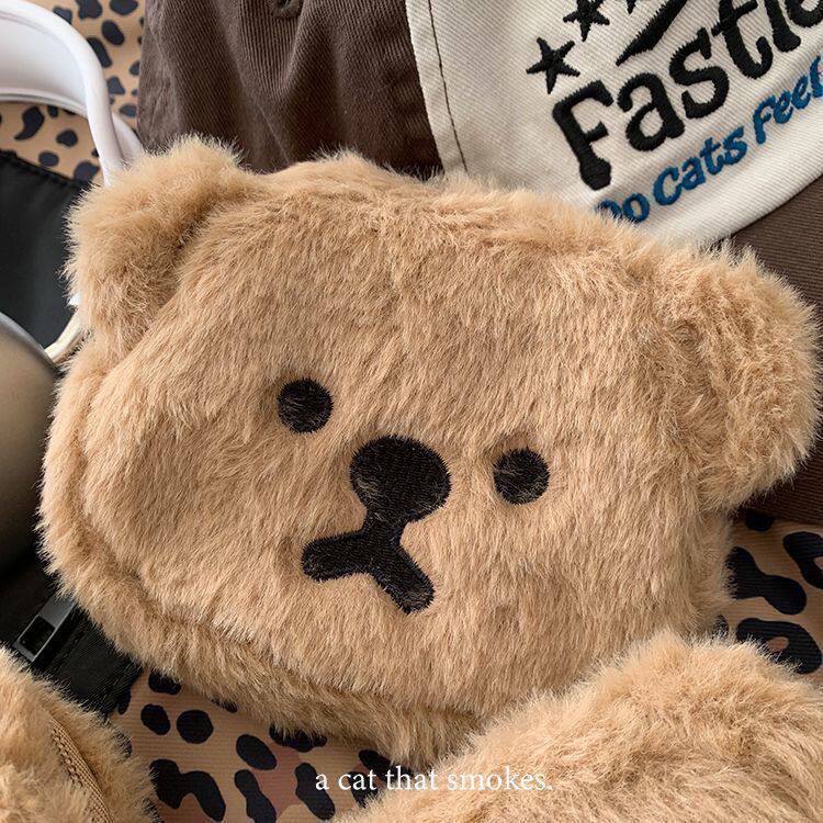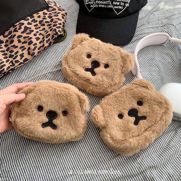 可爱毛绒小熊零钱包女杂物便携化妆收纳包口红包耳机包卡包零钱包