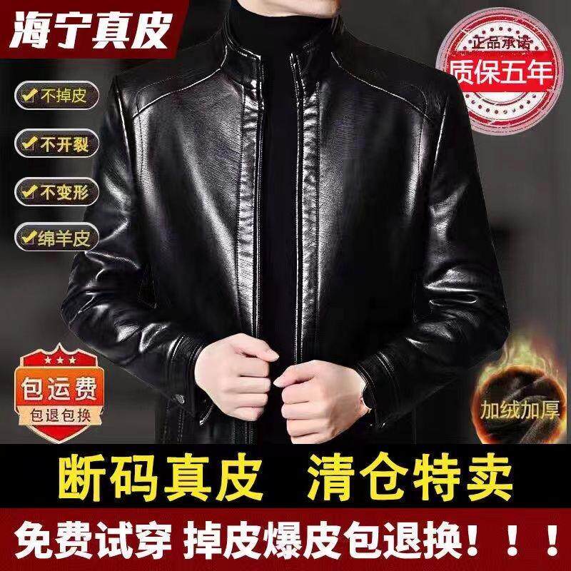皮夹克秋冬新款 海宁正品 男士 皮衣捡漏促销 真皮皮衣商务休闲爸爸装