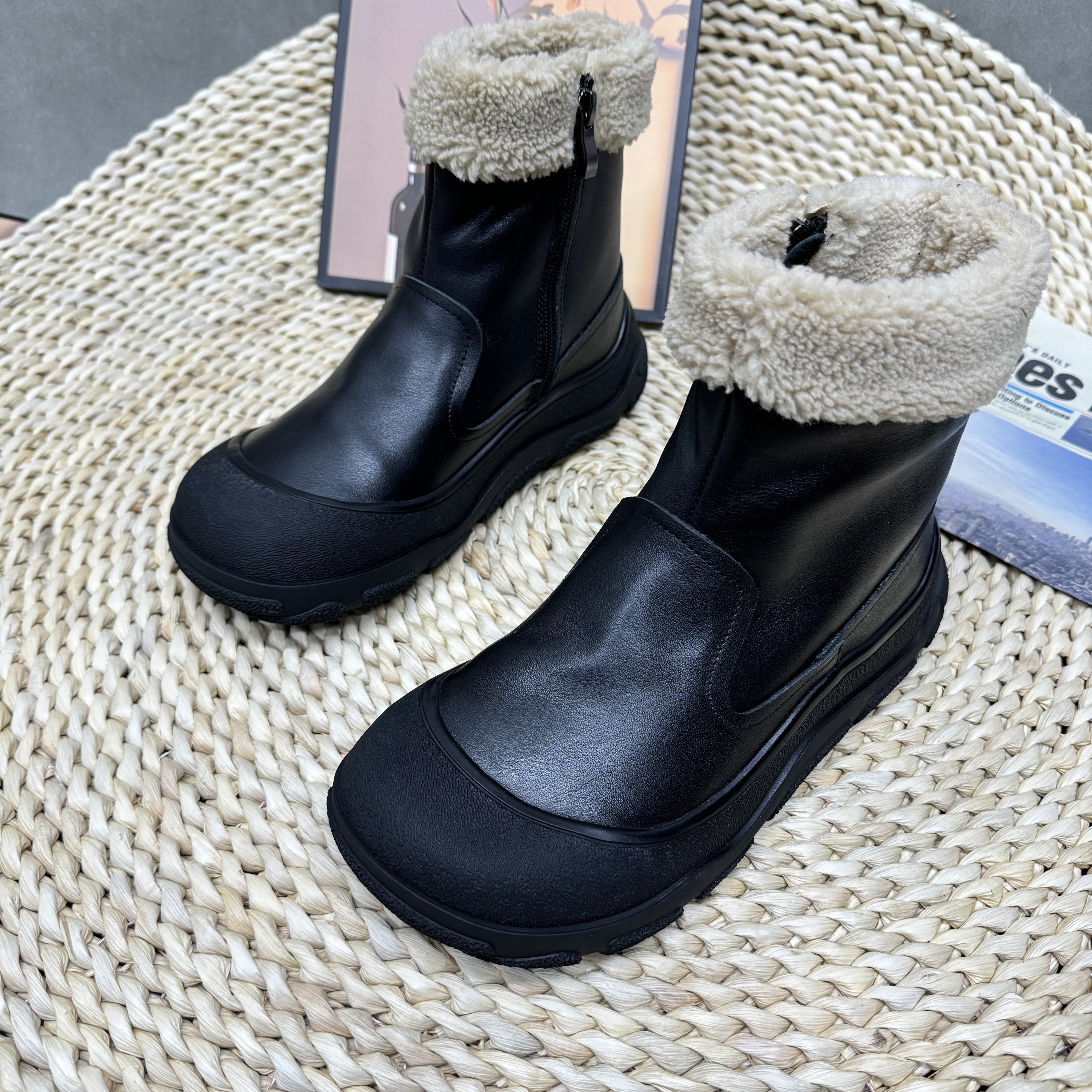 冬季 女平底高帮中筒靴软底毛毛棉鞋 保暖美拉德雪地靴 新款 2025冬季