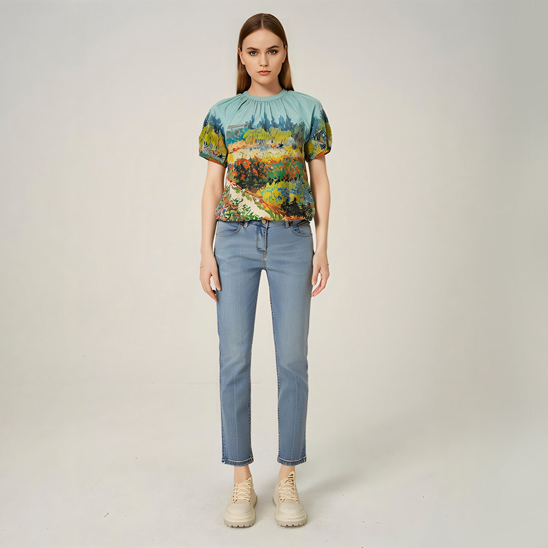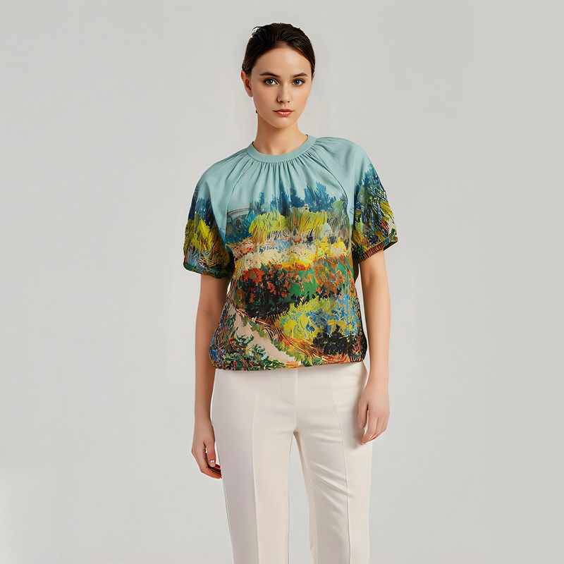 女士时尚 衬衫 上衣 CHEVIGNON法国尚飞扬阿尔花园小径短袖 梵高联名