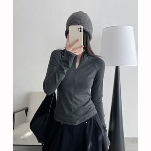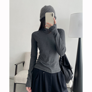 小众打底衫 女春季 2025春秋季 sun柚 T恤上衣开衫 长袖 修身 内搭 美式