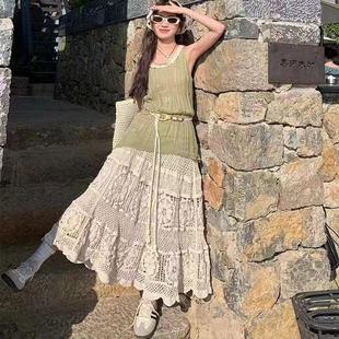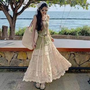 2024新韩版 钩花镂空设计松紧针织裙A字半身裙 温柔重工复古法式