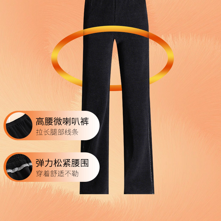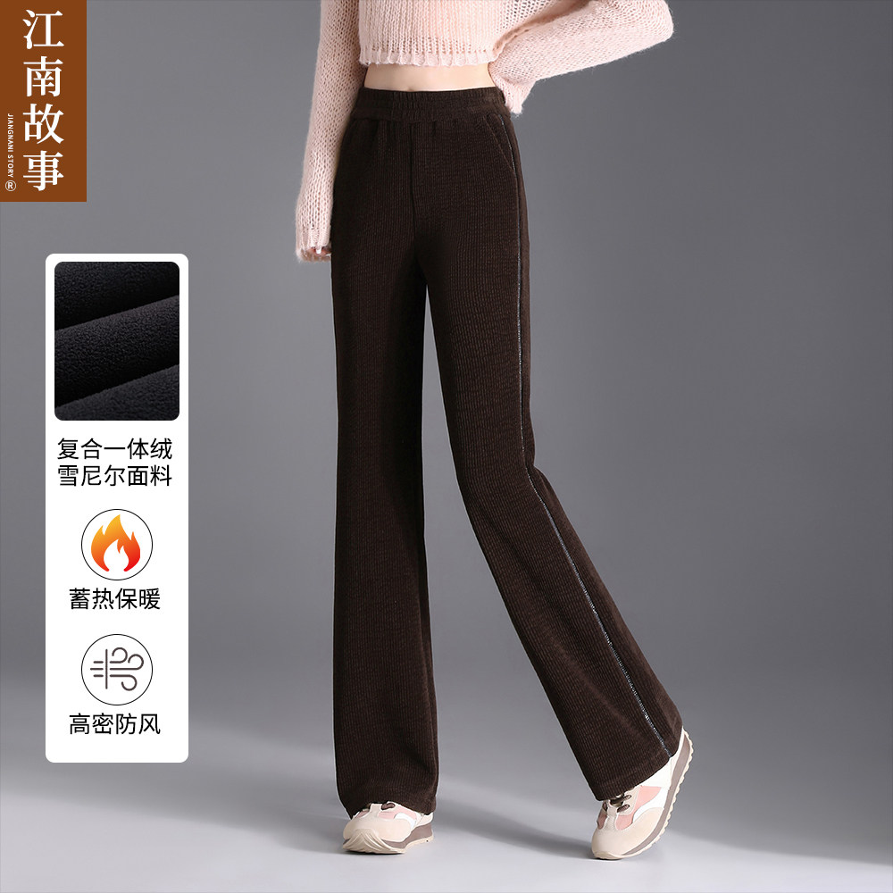 雪尼尔高腰显瘦松紧腰阔腿裤 妈妈黑色长裤 2025春 江南故事