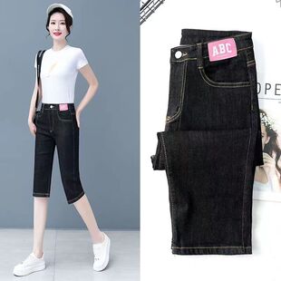 七分裤 薄款 女高腰深档显瘦直筒牛仔裤 大码 高档上档次 夏季 中裤 新品