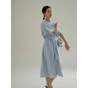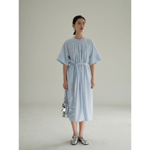 连衣裙长裙子 100%莱赛尔简约都市垂感系带宽松衬衫 到手199元