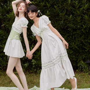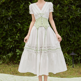复古清新感少女格子连衣裙鱼骨腰封套装 法式 青苹果乐园 LaceMade