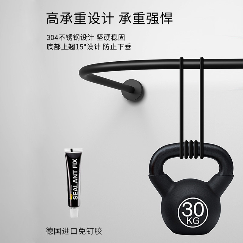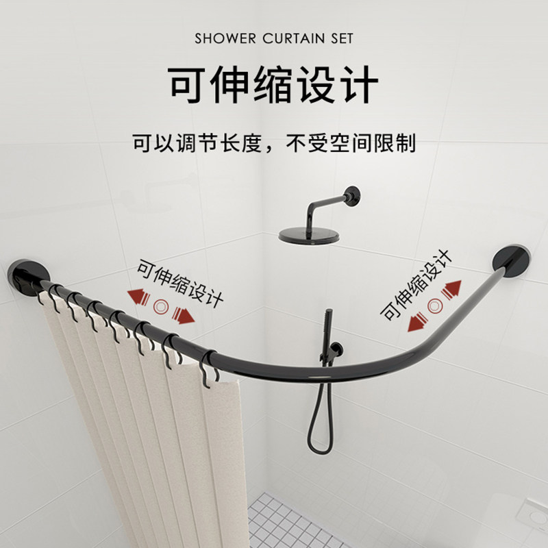 免打孔伸缩浴帘杆卫生间防水防霉不锈钢弧形杆浴室单杆304不锈钢