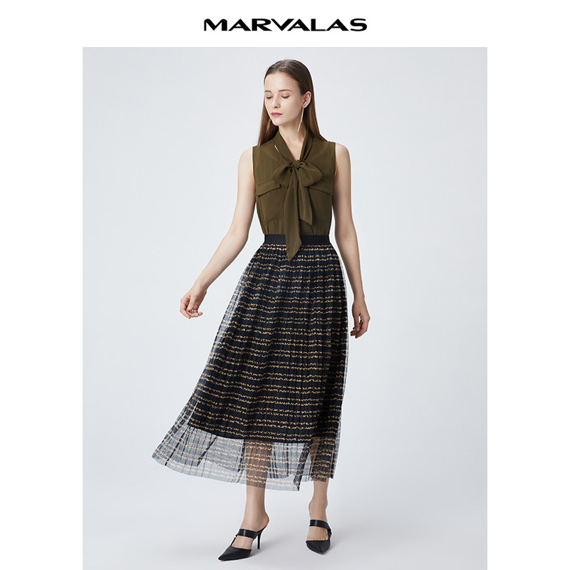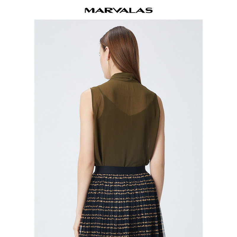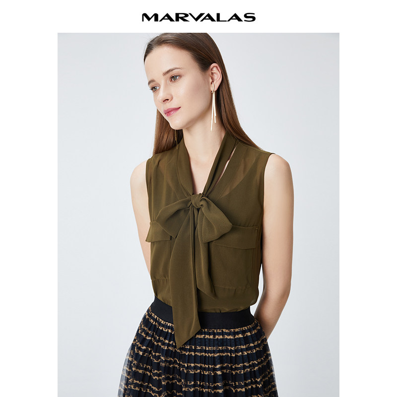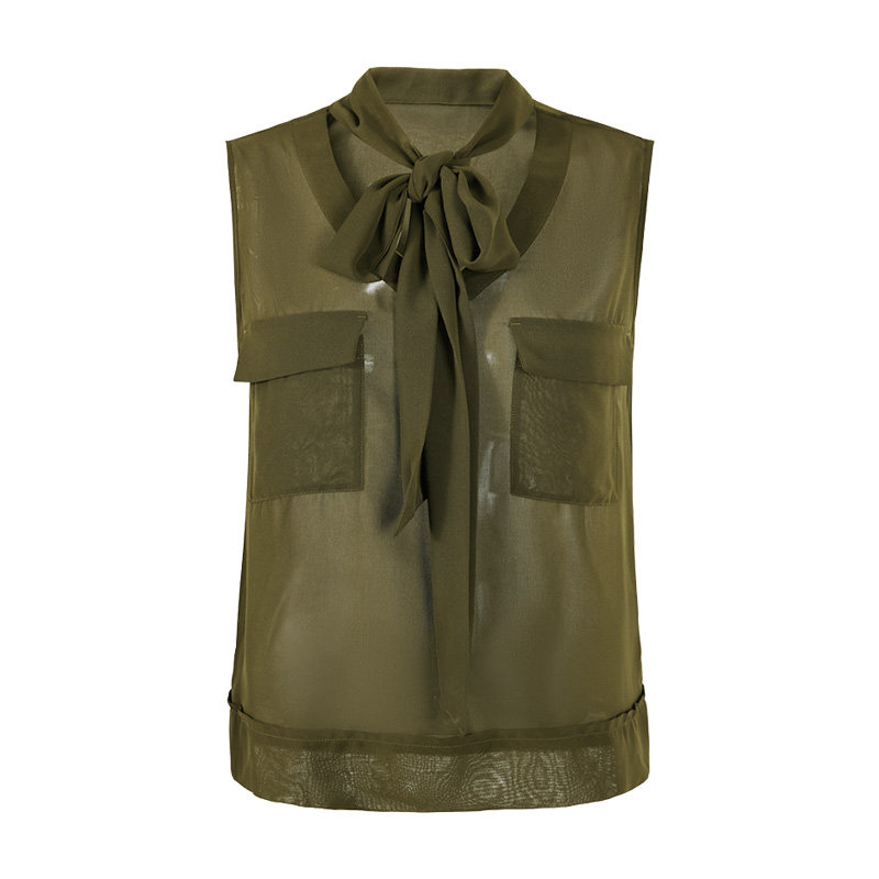曼德诗雪纺无袖 设计时髦气质上衣 上衣女夏橄榄绿背心外穿2025新款