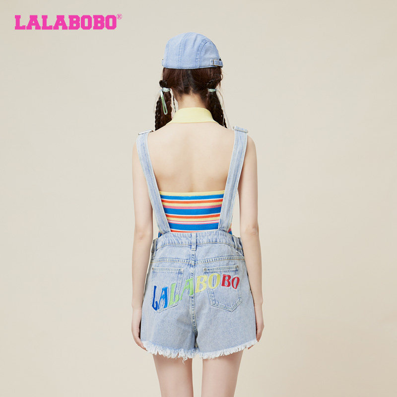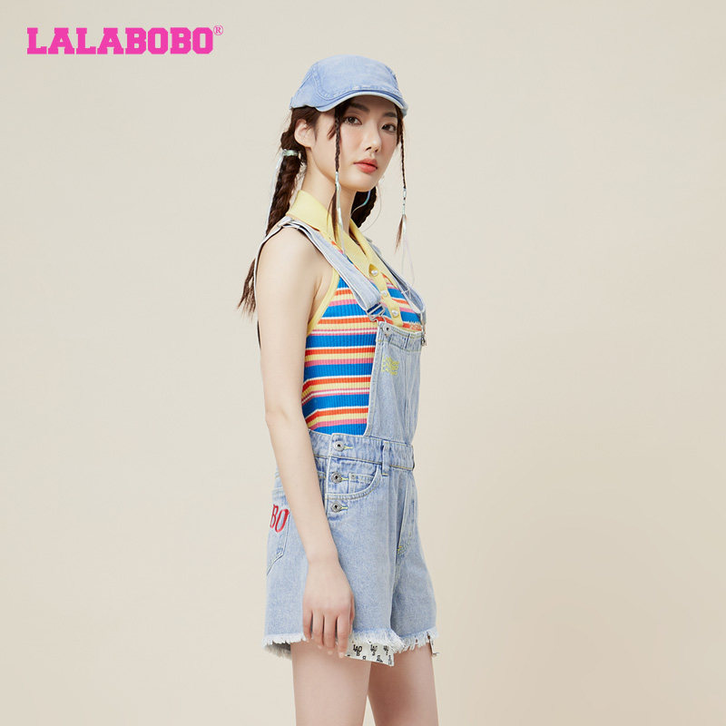 甜系夏日海滨浅蓝牛仔背带短裤 LALABOBO2024夏新款 设计师潮牌