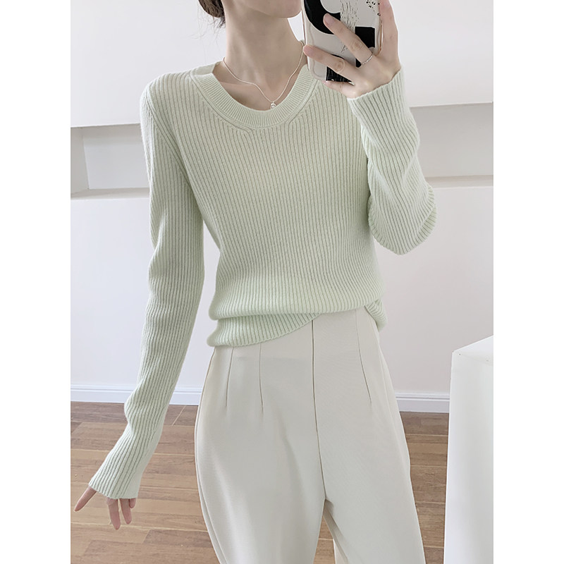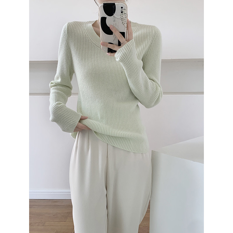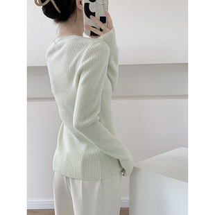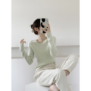 外穿上衣显瘦绵羊毛打底衫 春秋季 2025新款 浅绿色低领毛衣女款