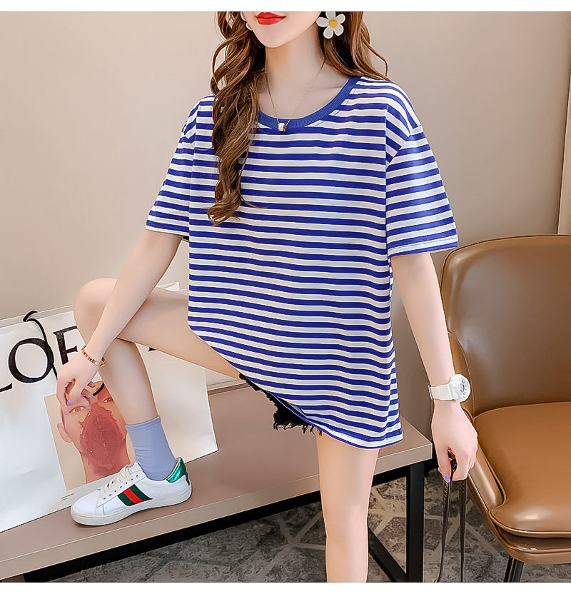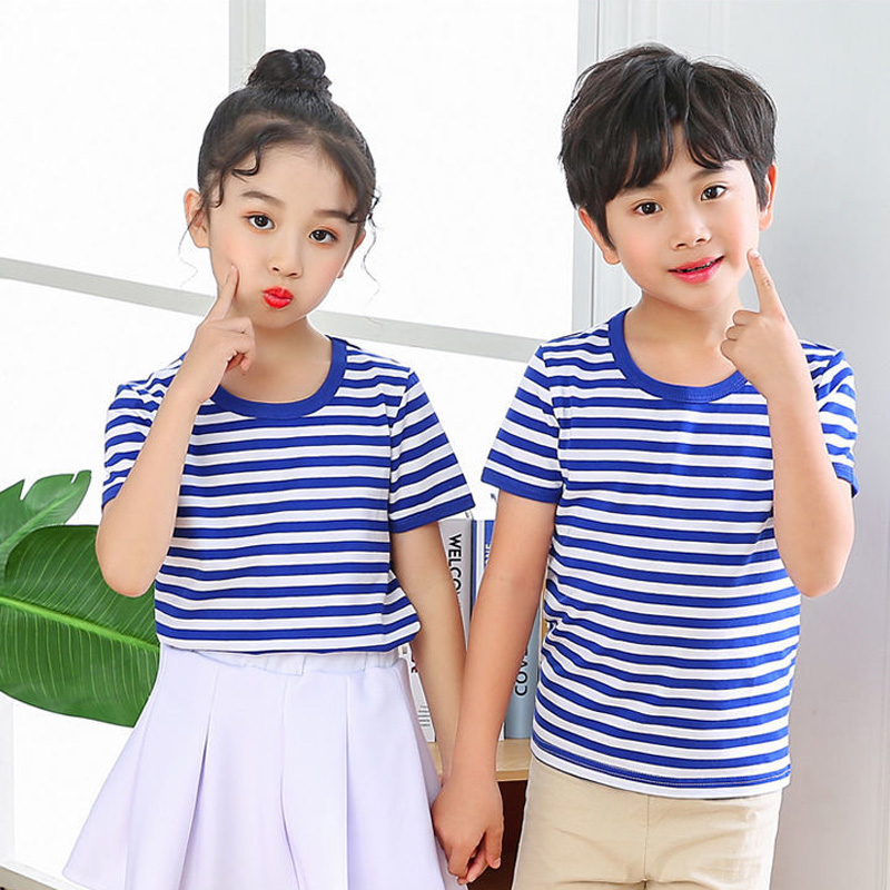 海边风水手服打底衫 女蓝白条纹T恤男亲子装 幼儿园t 短袖 纯棉海魂衫