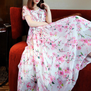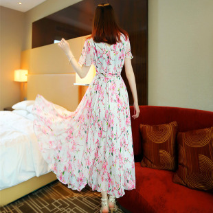 宽松显瘦沙滩长裙海边度假 白色雪纺连衣裙碎花胖mm大码 夏季 新款