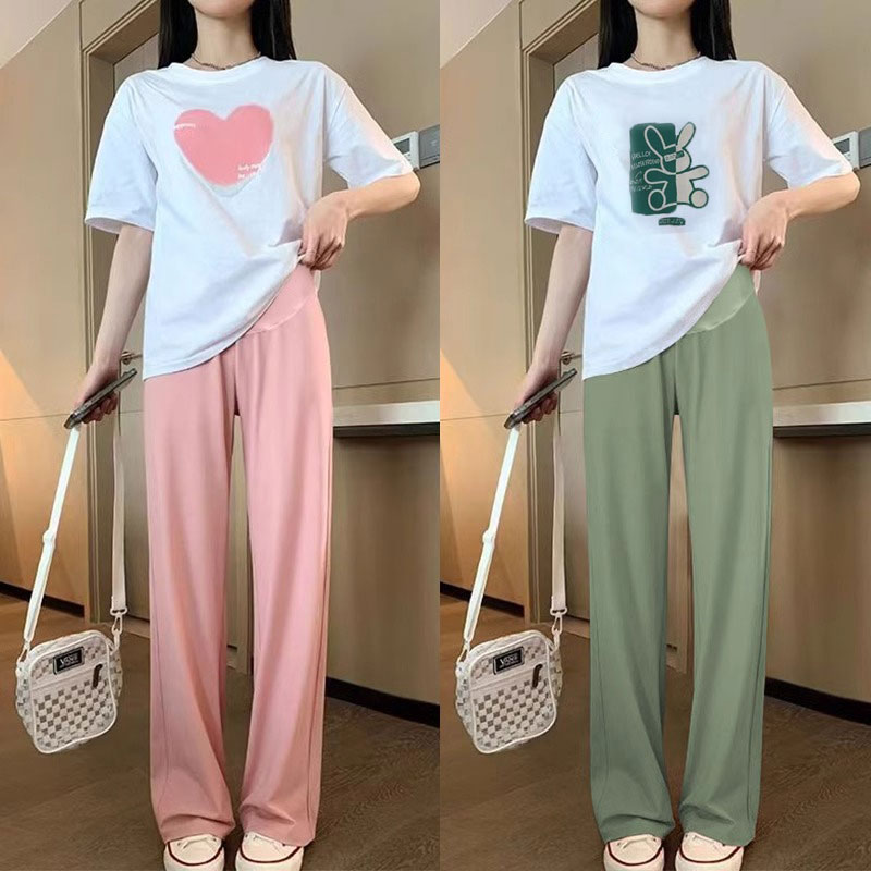 宽松圆领时尚 2025新款 休闲薄款 短袖 子两件套女 孕妇套装 上衣裤 夏季