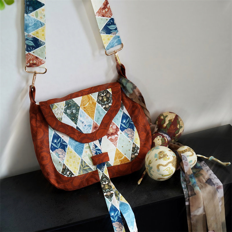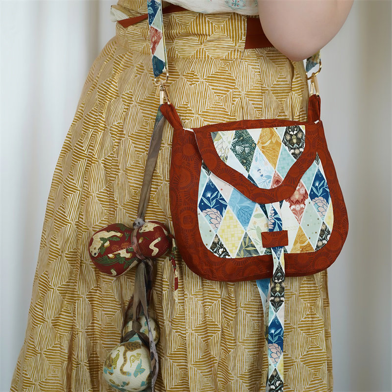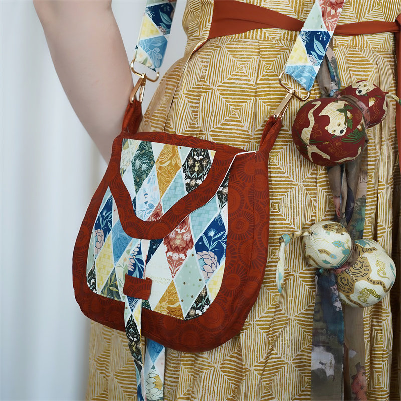 云深雾浅 仿古货郎包古风拼色棉布包汉服斜跨包包百搭唐风女 进宝