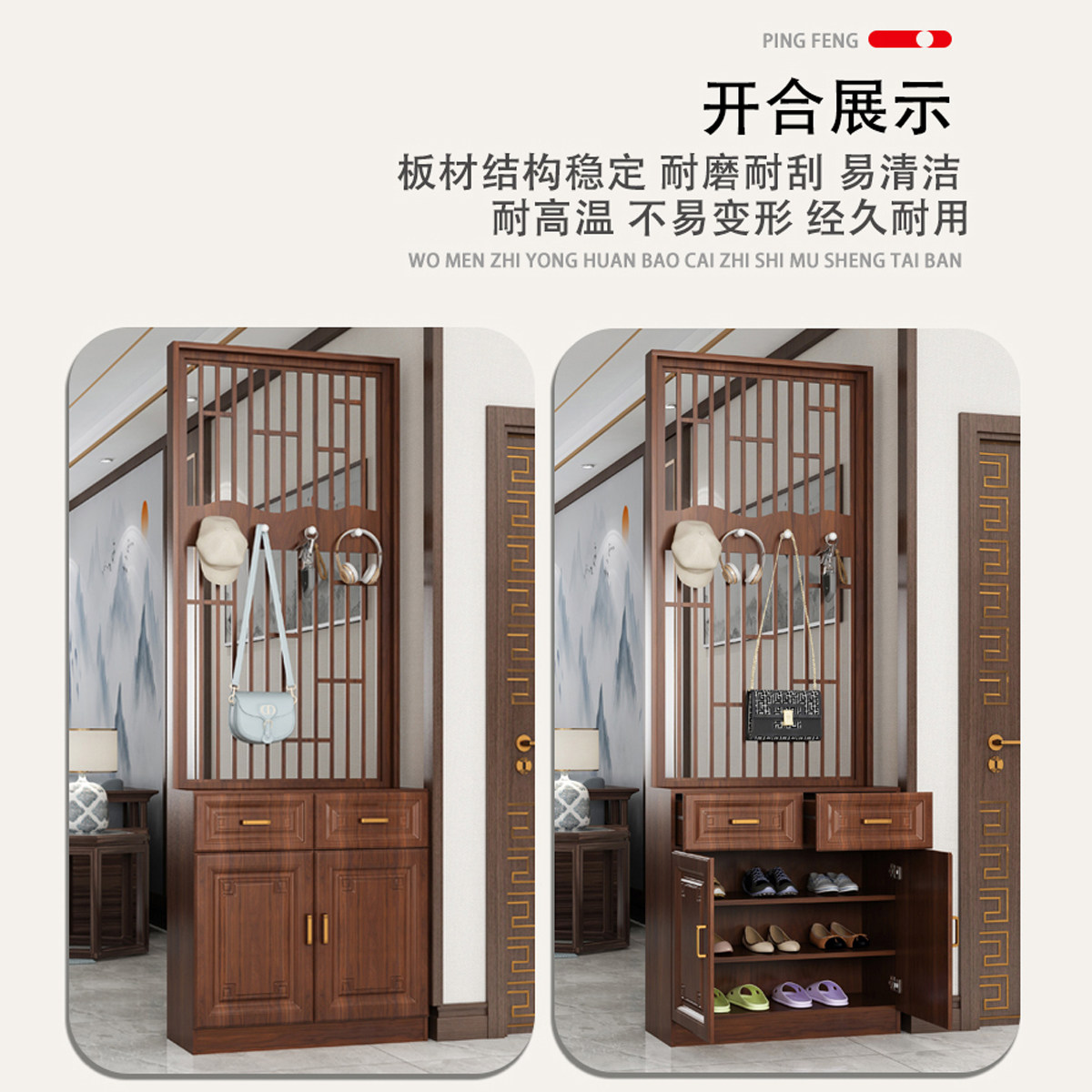鞋 柜带挂衣架一体落地客厅家用进门玄关门口卧室收纳置物架衣帽架