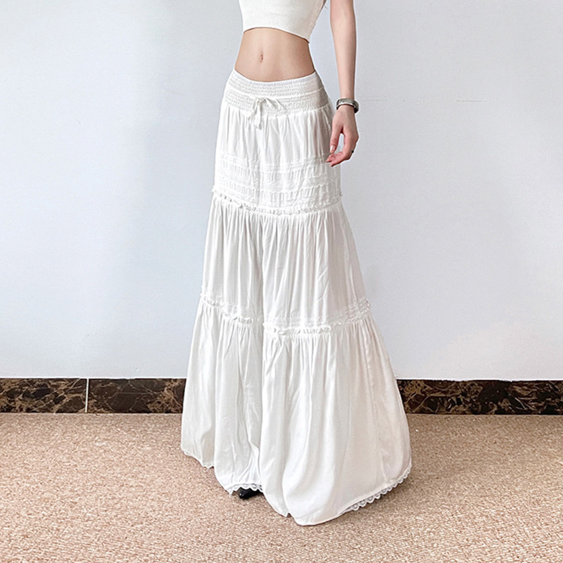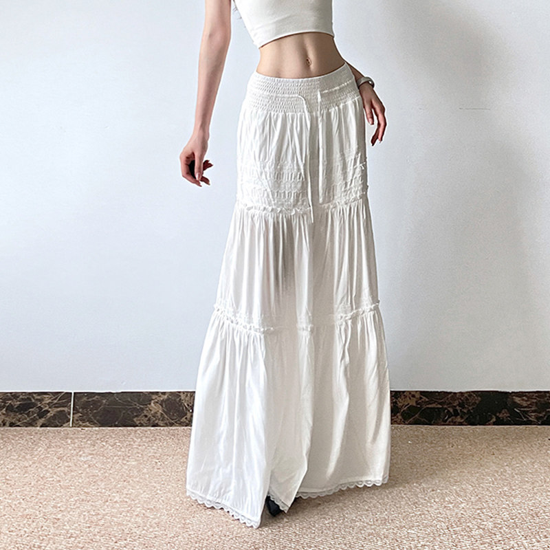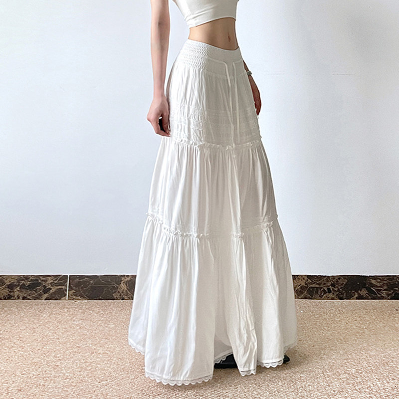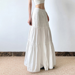 H家欧美女装 波西米亚度假风蕾丝拼接纯白色半身裙百搭重工长裙潮