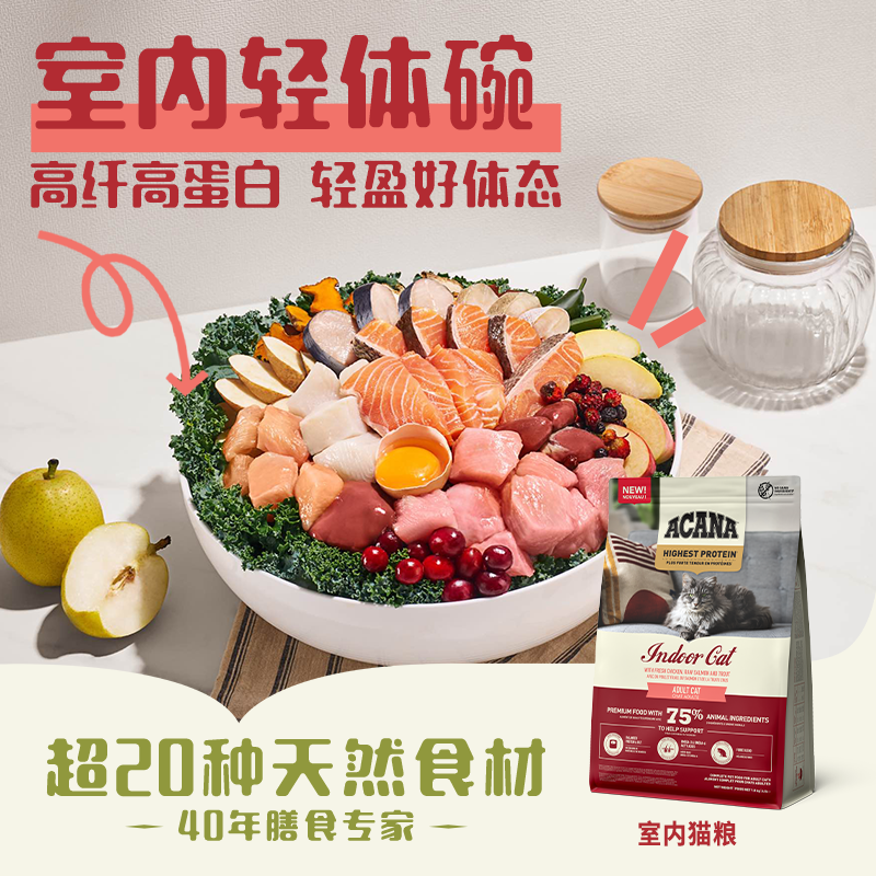 ACANA爱肯拿室内成猫猫粮进口成猫全猫主粮4.5kg 官方旗舰