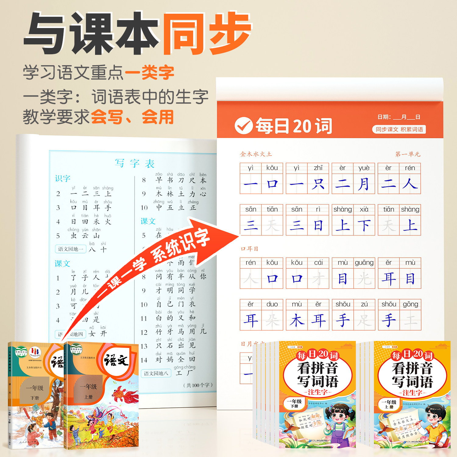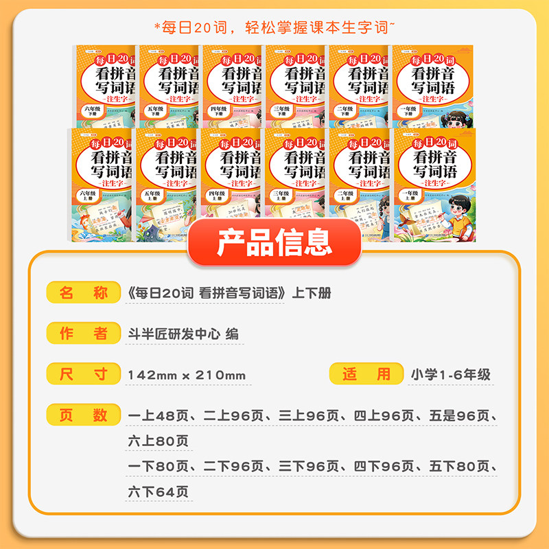 一年级二年级看拼音写词语字帖三四五六年级上册小学生专用语文人教版 生字默写同步组词专项训练常用词语练字帖初学者描红每日一练