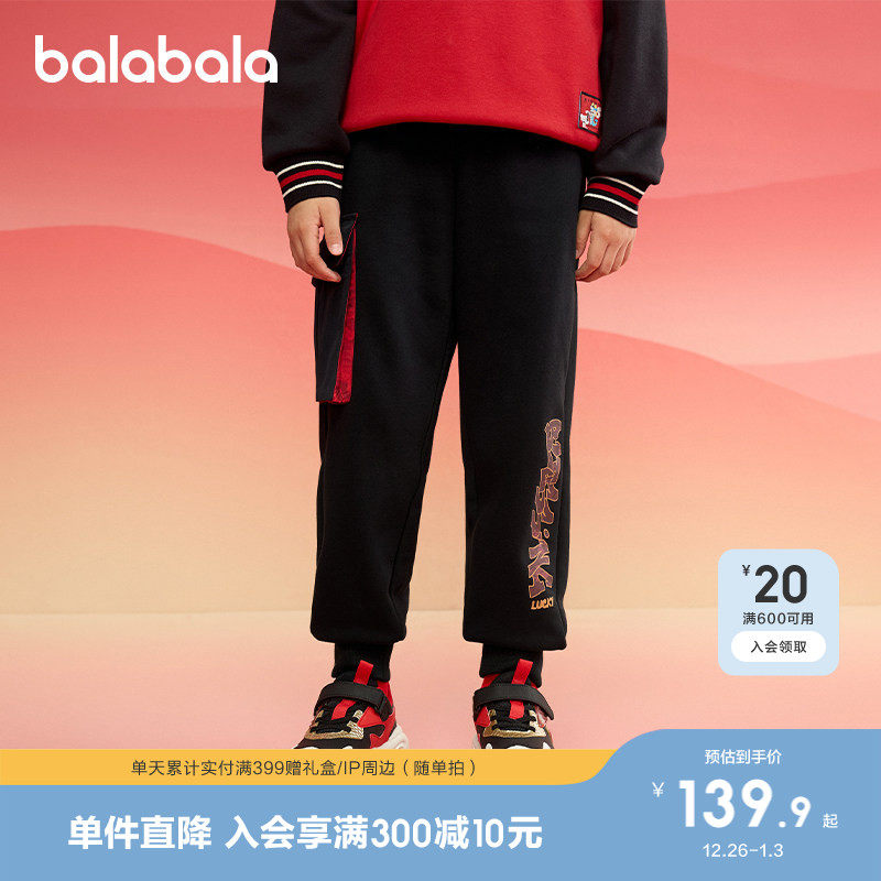 大童拜年服运动卫裤 巴拉巴拉童装 2025春秋装 子儿童加绒长裤 男童裤