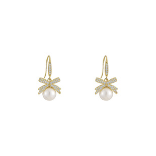 蝴蝶结珍珠吊坠耳环2025新款 高级感轻奢耳坠女气质耳钉耳饰品 爆款