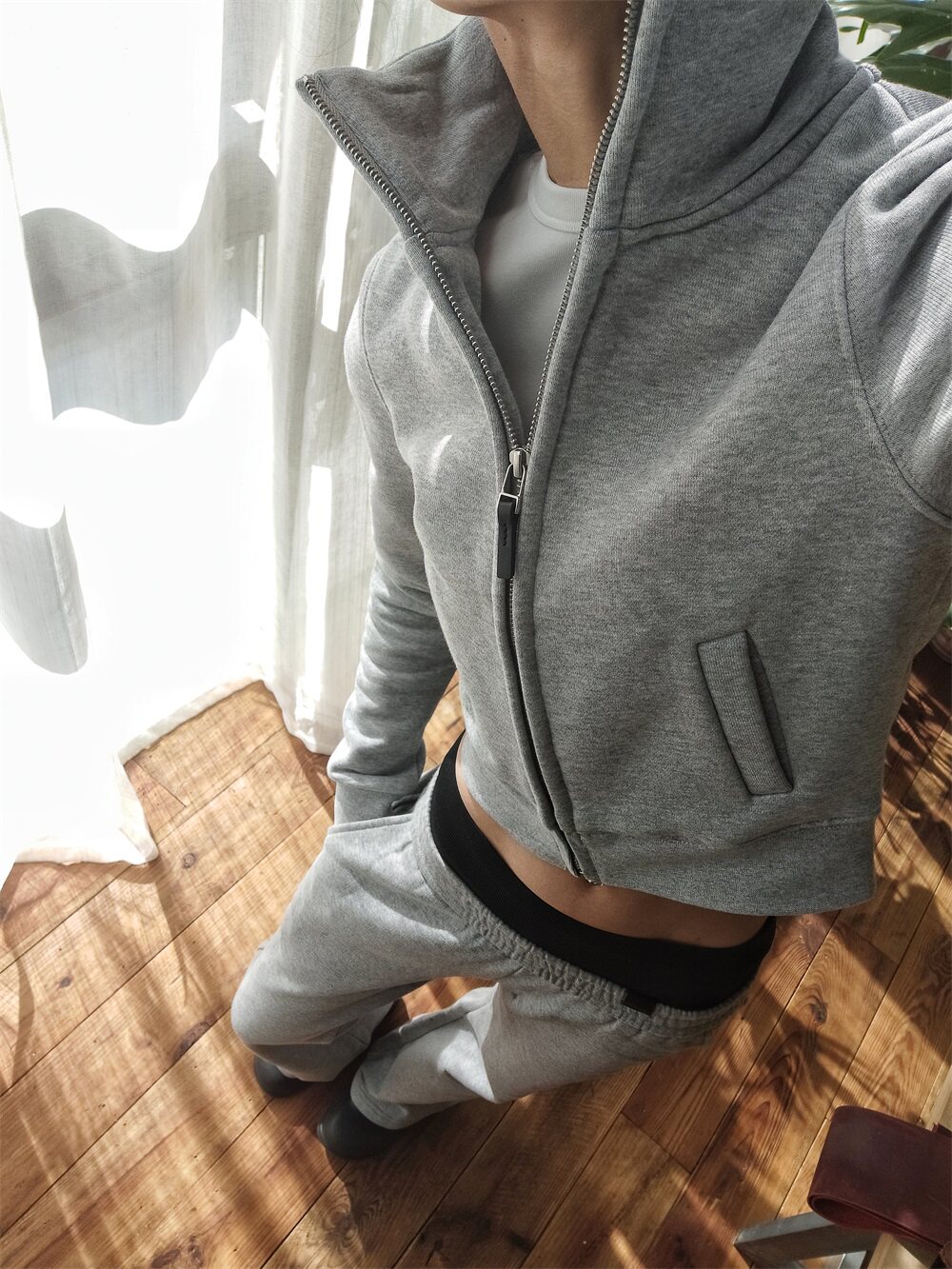 次日早晨 短版 散步 修身 外套 正肩立领抓绒卫衣小夹克 清仓