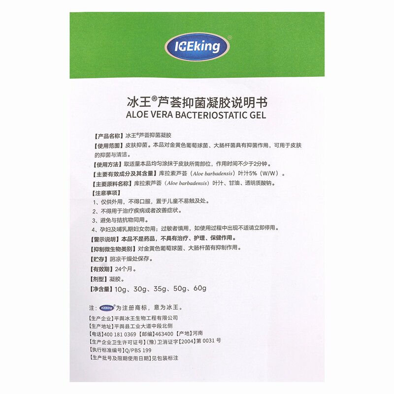 冰王芦荟抑菌凝胶30g皮肤抑菌清洁正品 旗舰店
