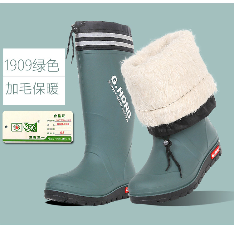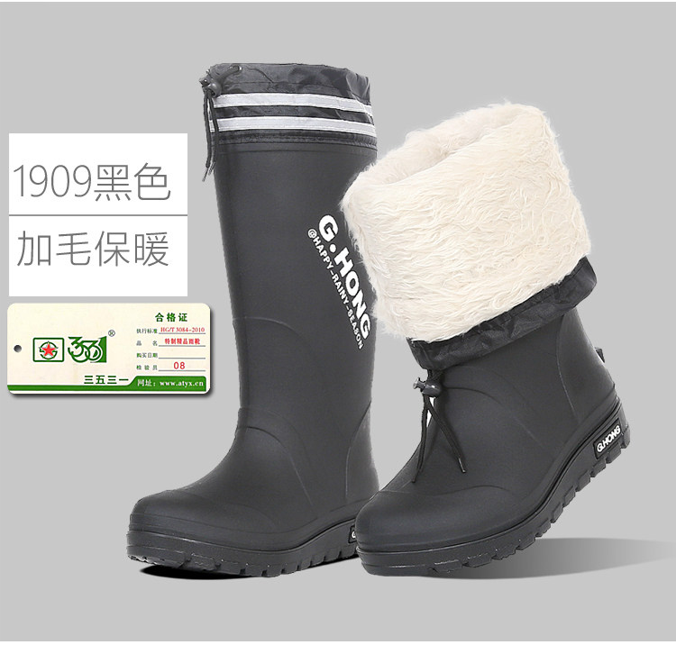 保暖棉雨靴防雨水厚底胶靴冬天防水靴 男高筒时尚 3531冬季 加绒雨鞋