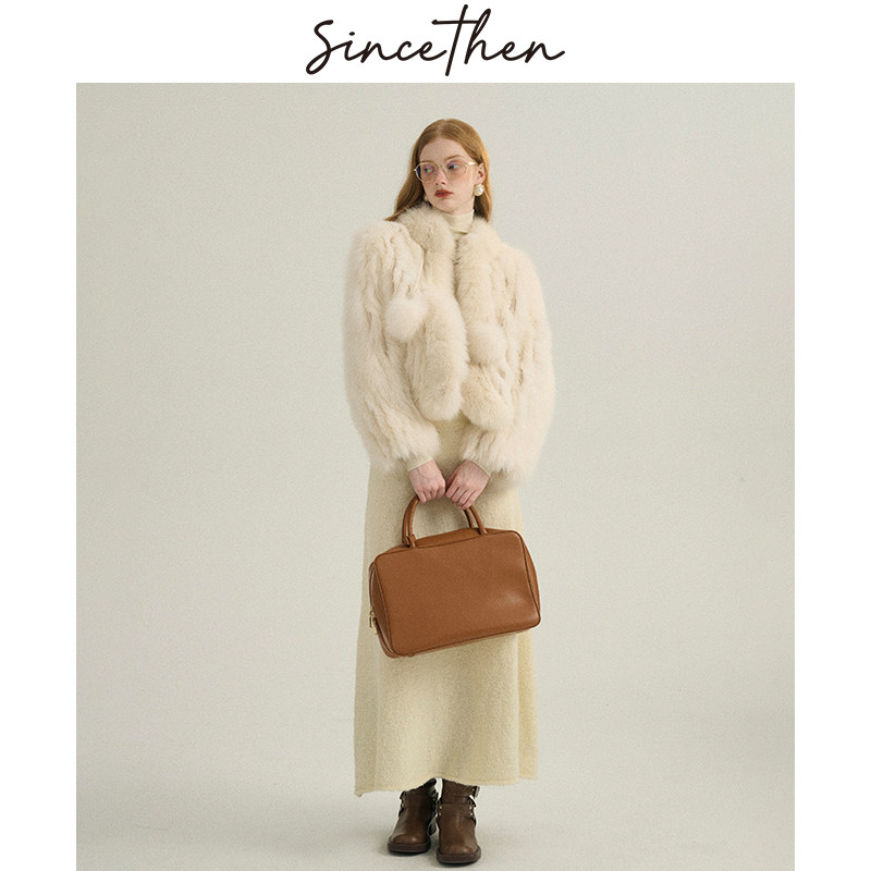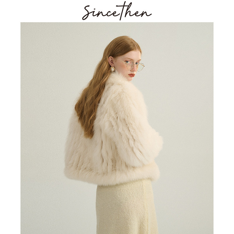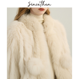 高级感外套女冬季 sincethen白色皮草外套狐狸毛法式 风名媛风短款