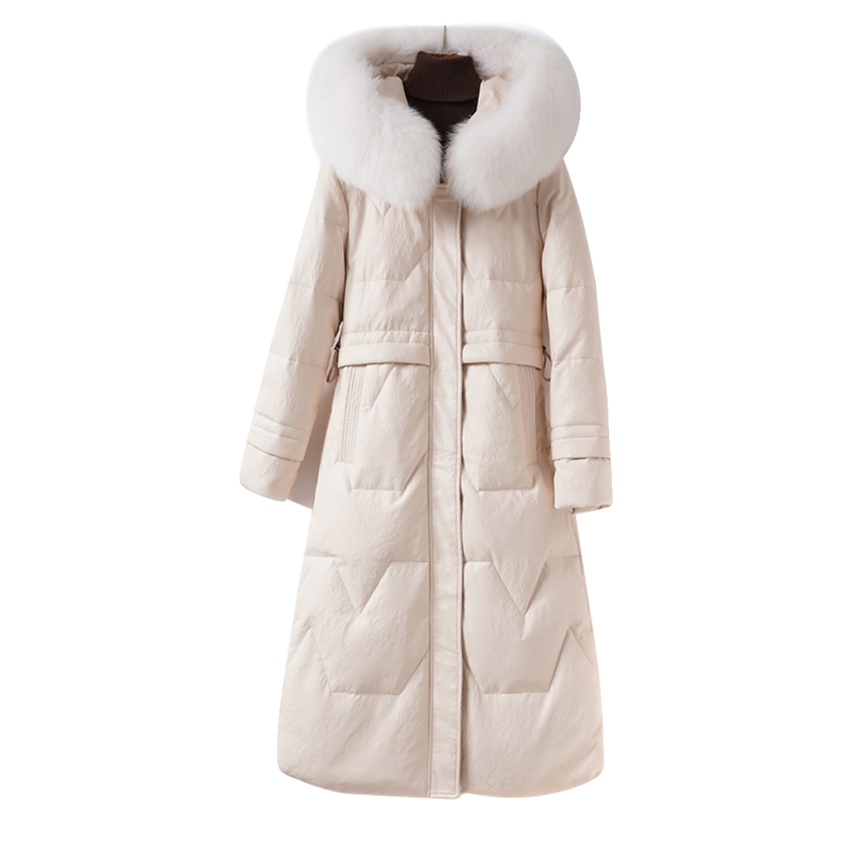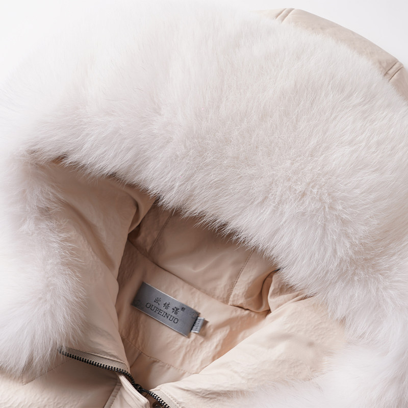 皮羽绒服女中长款 高端真皮衣 连帽狐狸毛领海宁绵羊皮外套2026新款