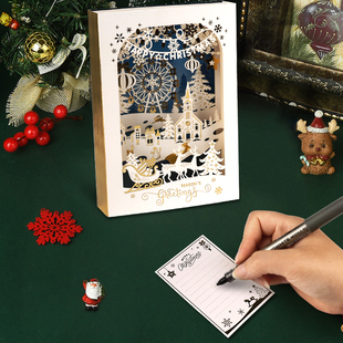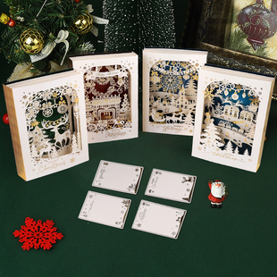 2025圣诞3D立体贺卡高级感圣诞节节日祝福留言卡手写空白卡片英文创意儿童宝宝平安夜礼物糖果苹果礼盒明信片