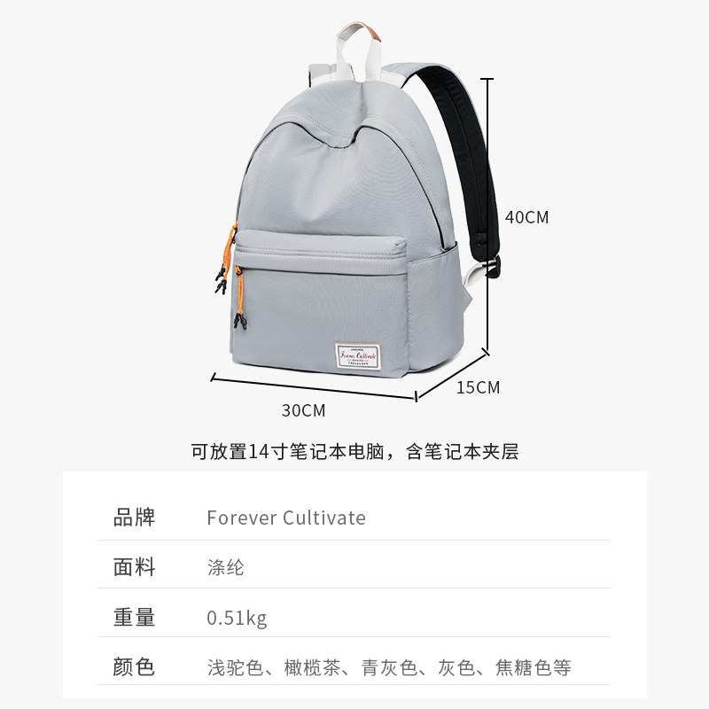 Forever纯色双肩包简约女大学生休闲旅行背包电脑包初中生书包男