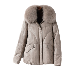 海宁皮衣女士短款 90白鸭绒真皮羽绒服 狐狸毛领绵羊皮外套2026新款