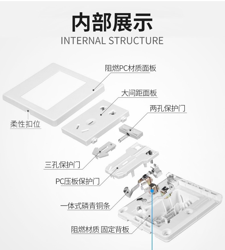 开关插座16A空调插座热水器专用三孔大功率家用电工86型电源面板